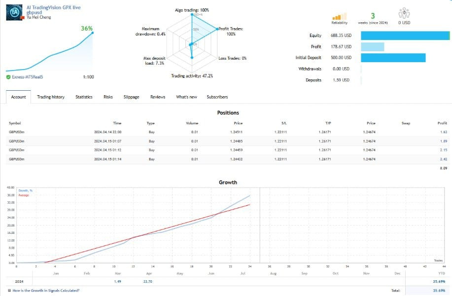AI TradingVision GPX MT4 Unlimited is an advanced AI-driven Expert Advisor built on neural network technology, designed to identify the most profitable entry and exit points in live market conditions.