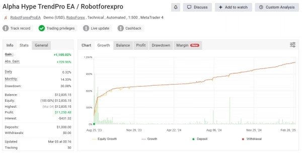 Alpha Hype TrendPro EA MT4 is an advanced automated trading system designed for professional traders and Prop Firms.